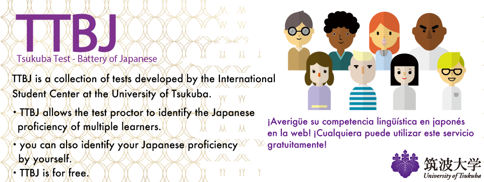 The TTBJ (Tsukuba Test-Battery of Japanese) is operated by The Center for Distance Learning of Japanese and Japanese Issues within the Center for Education of Global Communication, the University of Tsukuba.