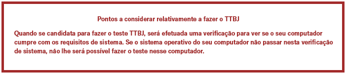 Os seguintes requisitos de sistema são necessários para fazer testes TTBJ.